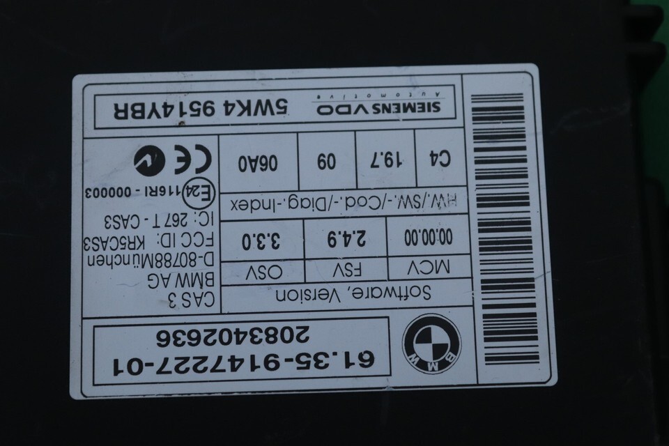 Items included - dme/dme pn => 8506137, cas3 Module p/n 61.35-9147227-01 & key fob