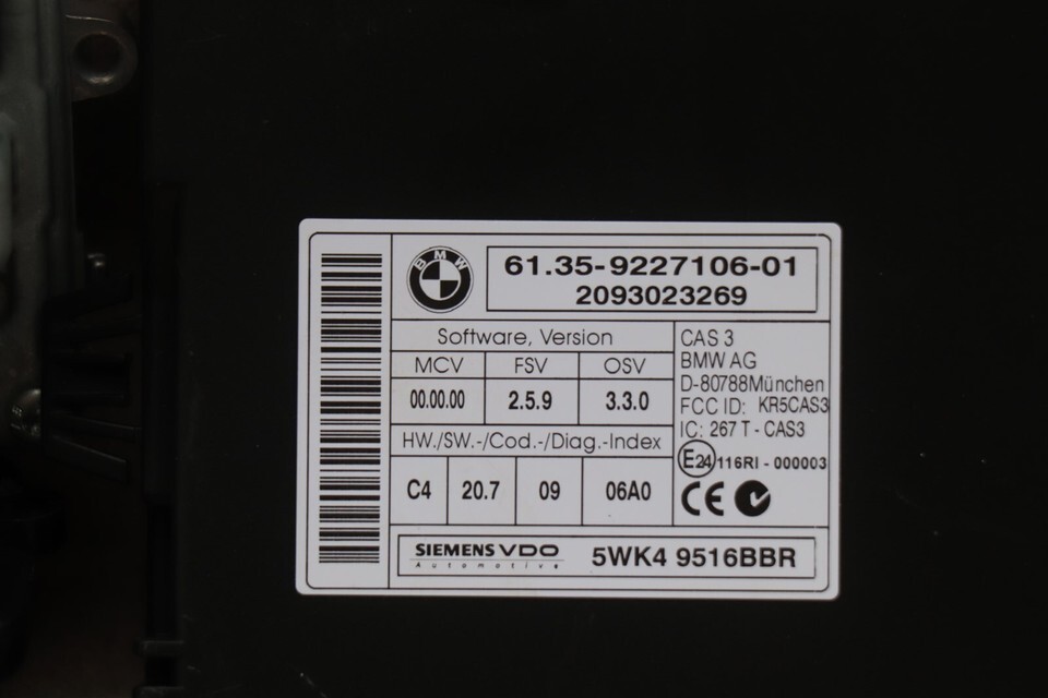 Items included - dme/dme pn => 8506420, cas3 Module p/n 61.35-9227106-01 & key fob