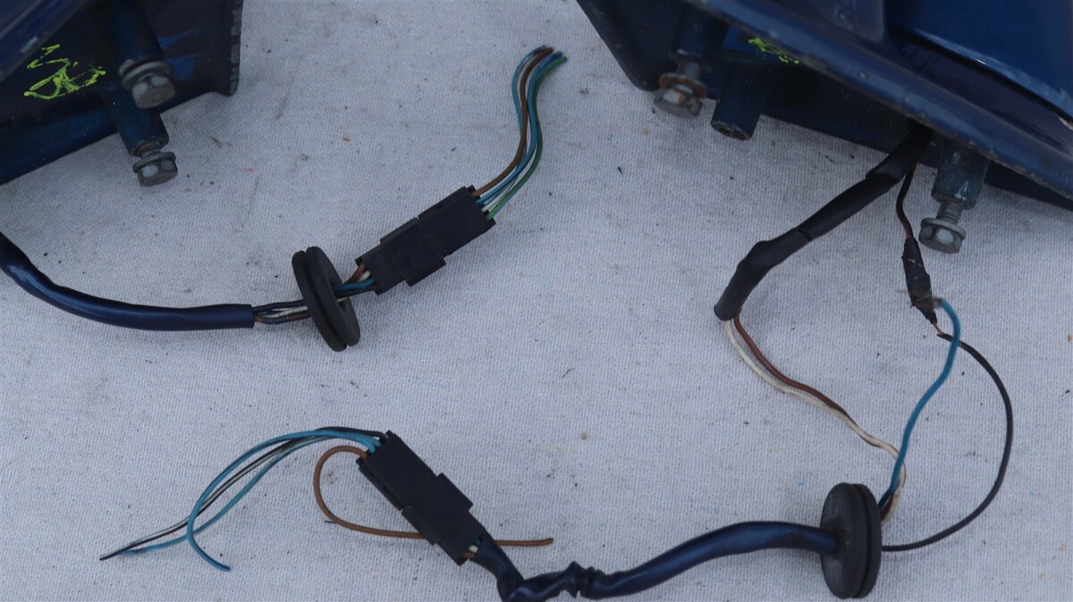 Cond: :> Both glass look good, the housings have heavy paint corrosion hence will need sanding and repaint. The drivr side unit will need harness repair ir replacement ( see images), plenty of life **