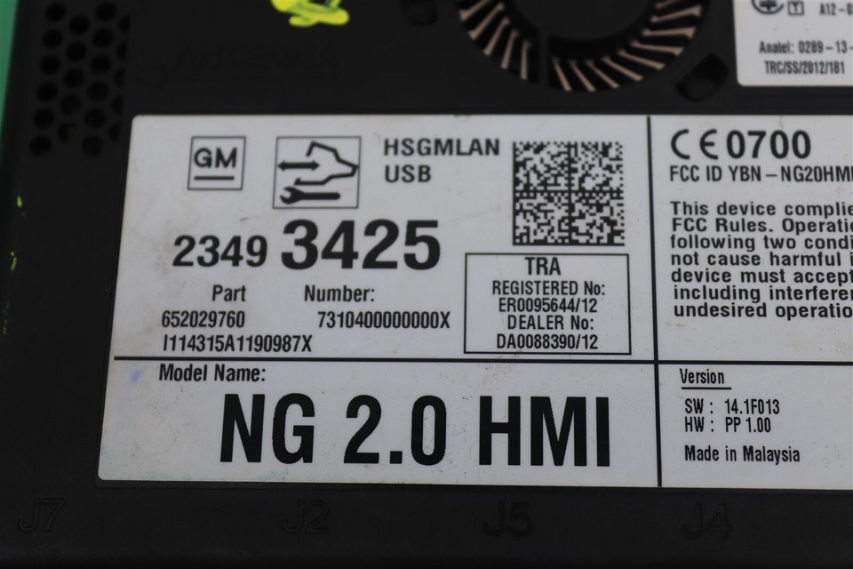Chevy Cadillac Buick GMC NG-2.0 HMI Infotainment Display Control Module 23493425