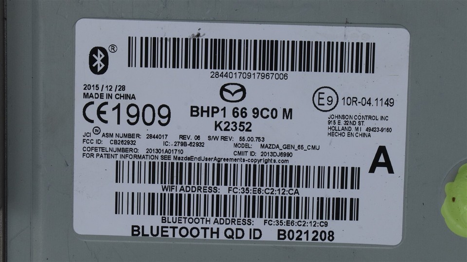 Used item: Mazda 3 Bluetooth Connectivity Control Module Adapter Radio Stereo BHP1-66-9C0-M,,